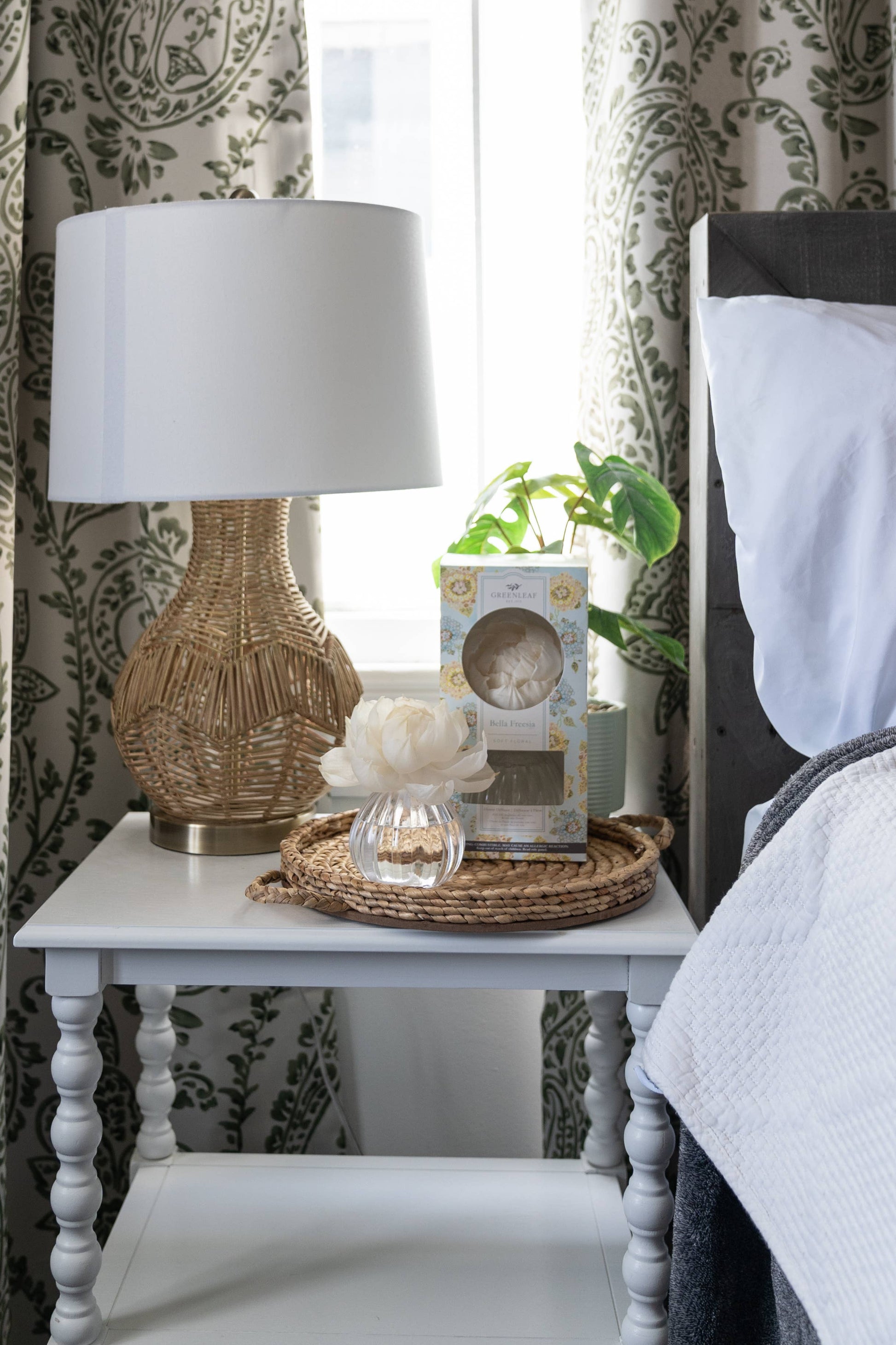 Our flower diffuser includes your favorite Greenleaf fragrance oil and a sola paper flower that emits a beautiful, blooming scent for up to 60 days! As the fragrance oils are absorbed through the wick, the flower begins to “bloom,” slowly emitting the fragrance and eventually resembling real flower petals. With the neutral color of the oil and the large flower, it will enhance and complement any space.
